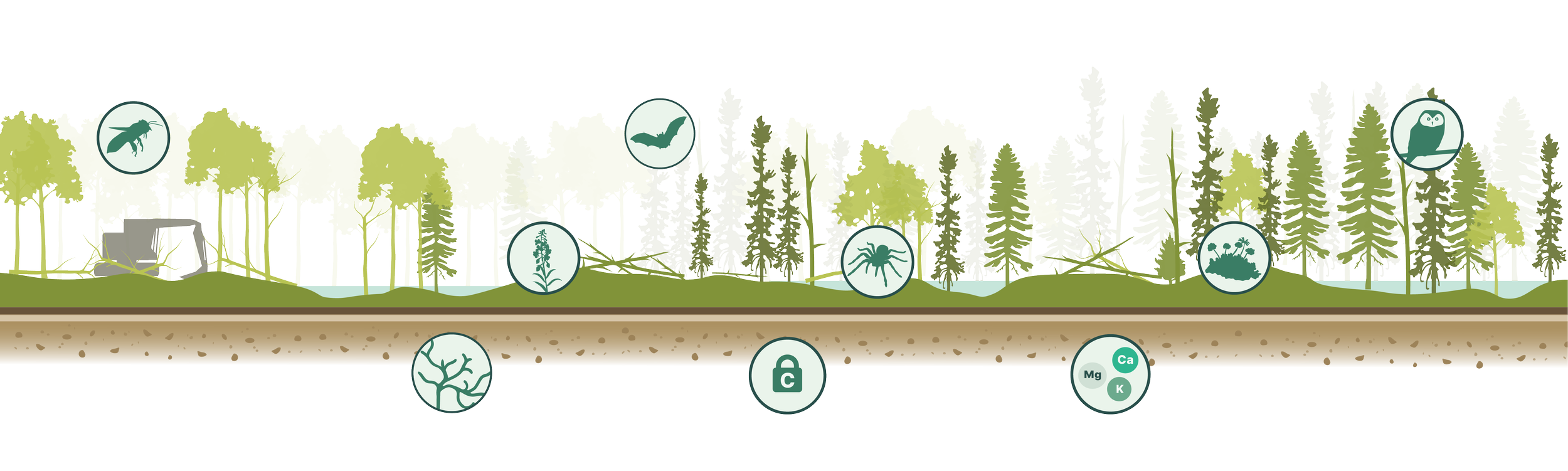 EMEND research examines the significance of variable retention harvesting in supporting and promoting biodiversity within forest ecosystems. The responses of a diverse range of species including plants, invertebrates, mammals, birds and more have revealed that retention provides important biodiversity benefits. Rather than identifying a one-size-fits-all approach, researchers have found that a range of retention approaches provides a range of benefits. Retention harvesting effects vary between deciduous and coniferous forests, with different retention levels supporting distinct species.